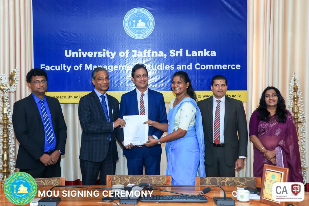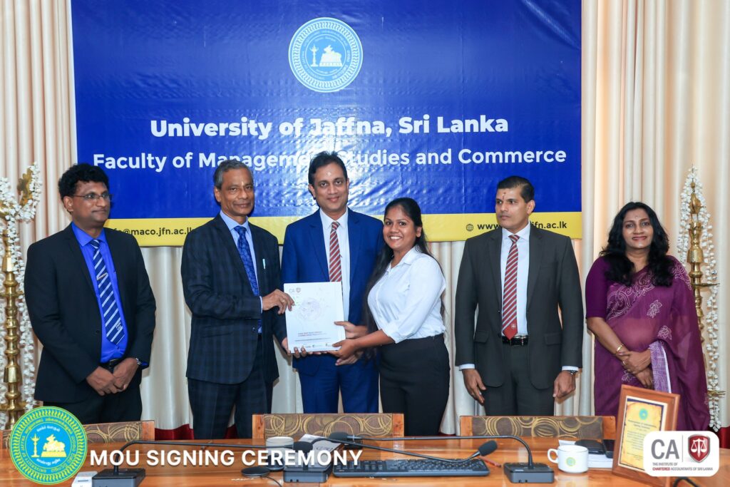 The QuickBooks Certificate course, conducted by CA Sri Lanka at the request of the Department of Accounting, awarded on 4 August 2025. The ceremony was attended by distinguished guests, including Prof. S. Srisatkunarajah, Vice Chancellor of the University of Jaffna, Prof. N. Kengatharan, Dean of the Faculty of Management Studies and Commerce, and Prof. P. Pratheepkanth, Head of the Department of Accounting. Senior representatives from CA Sri Lanka, including Heshana Kuruppu, President, Tishan Subasinghe, Vice President, and Lakmali Priyangika, CEO, were also present to hand over the certificates